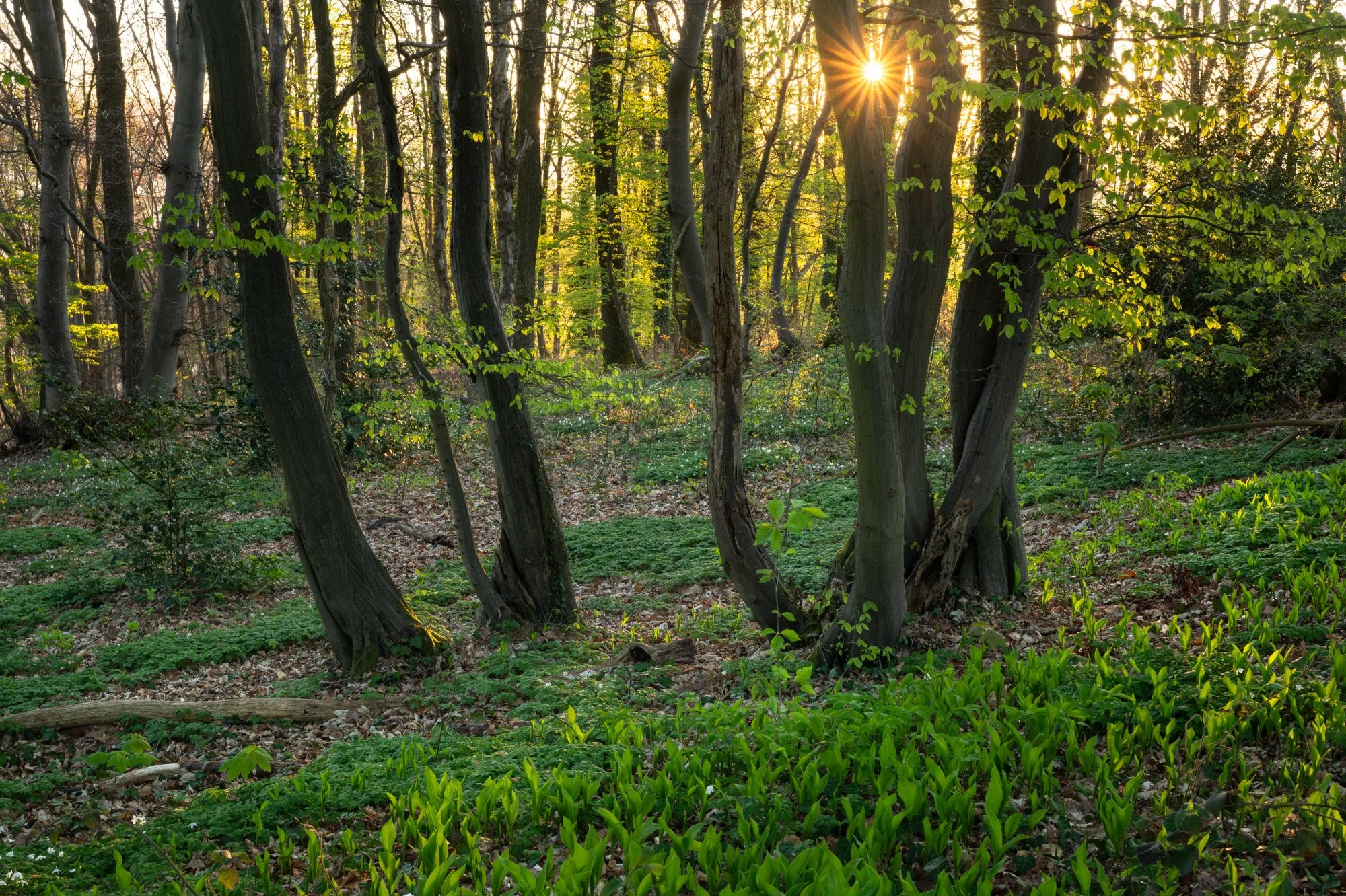 Ich befürchte, dass die Meinungen zum Waldfoto auseinandergehen werden. Ich find’s jedenfalls irgendwie recht grausam. Aber was soll ich machen? Es ist so schön frischgrün da draußen im Wald und ich wollte gerne Wald fotografieren. Ist halt ohne Nebel immer etwas riskant, die Reinfallgefahr ist recht hoch. Zu hoch an sich. Keine Ahnung wieso ich es trotzdem probiert habe. Eigentlich sollte ich es ja besser wissen. Vor allem: Ein (blöder) Sonnenstern kann da auch nicht viel rausreißen. Gemein ist ja, dass ich an sich ein Foto im Kopf habe. Also eben genau so ein Waldfoto bei Sonnenaufgang. Warmes Licht. Frisches Laub. Viel Unterwuchs. Gegenlicht. Subtiler Sonnenstern. Viel anzuschauen. Wenig Chaos.