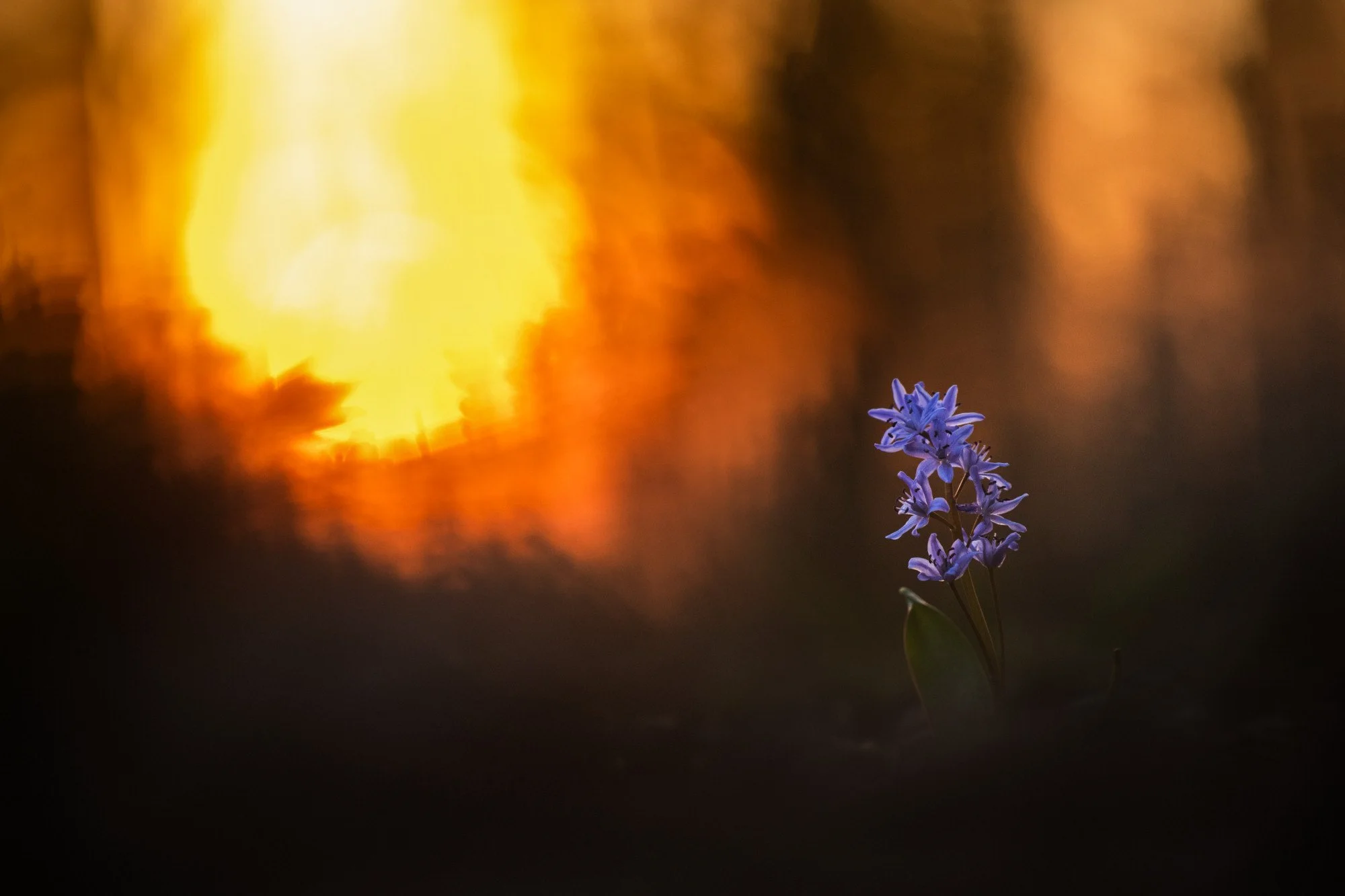 Nachdem der Morgen also nicht ganz so gelaufen ist, wie ich es mir in meiner blühenden Fantasie ausgemalt habe, bin ich dann tatsächlich abends nochmal los. Ganz ungewöhnlich. Der Sonnenuntergang findet aber halt auch noch zu einer Uhrzeit statt, die selbst ich nur schwer als “zu spät” bezeichnen kann. Und ich hatte das Gefühl, dass ich noch eine Rechnung mit den Zweiblättrigen Blausternchen offen hatte. So ganz zufrieden war ich mit den Fotos der letzten Tage noch nicht. Nicht, dass ich sie irgendwie schlecht finden würde, aber es hat einfach noch so das letzte Quäntchen Licht der tiefstehenden Sonne gefehlt. Und gerade dort ist ja nach Westen hin alles offen. Perfekt also für den Sonnenuntergang.