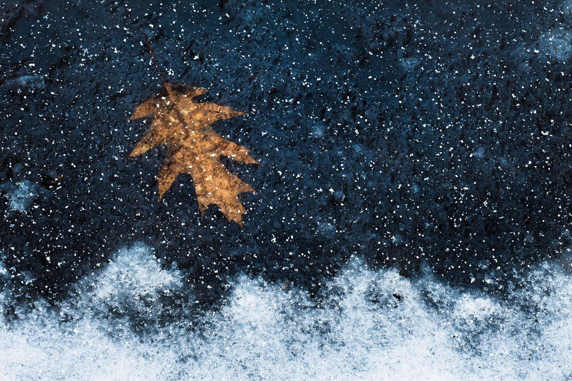 Ein Foto habe ich trotzdem mitgebracht. Blatt im Eis mit Schnee und Schneegriesel. Besser als nichts, schlechter als Birken im Schneefall. Zumindest, wenn das Birkenfoto so aussehen würde, wie ich es mir vorstelle. Die Wahrscheinlichkeit, dass es das nicht tun wird, ist allerdings hoch. Von daher bin ich jetzt einfach zufrieden mit dem Foto. ;)