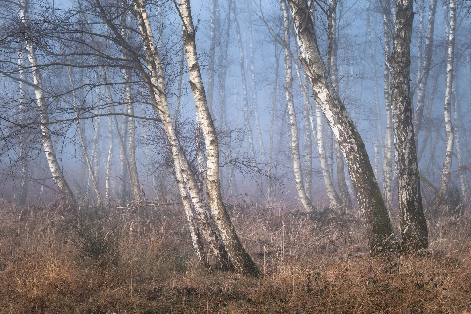 Statt dessen konzentriere ich mich doch auf die positiven Dinge des Lebens! Als der Sonnenaufgang so seinen Lauf nahm, ist dann nämlich doch nochmal etwas Nebel durch die Landschaft gezogen. Und ich habe zumindest ein paar Birken im Nebel erwischt. Also ja: Immerhin gab es mal Nebel! Und vielleicht war es nicht der letzte des Jahres. Optimistisch, wenn man bedenkt wie lange das Jahr noch geht…